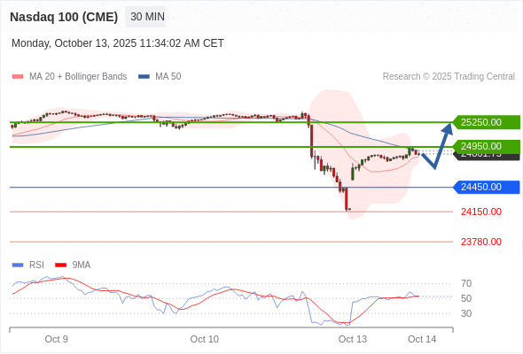 在 24450.00 之上,看涨,目标价位为 24950.00 ,然后为 25250.00 。