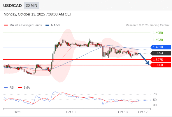 在 1.4010 之下,看跌,目标价位为 1.3975 ,然后为 1.3960 。